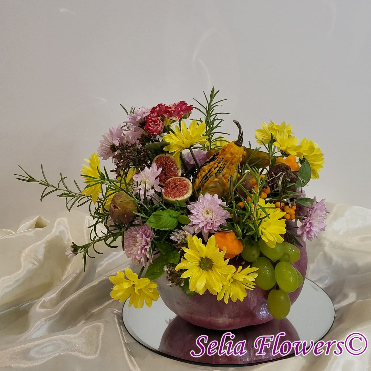 Este construit cu flori de toamnă, plante aromatice (rozmarin, salvie, busuioc și coriandru), fructe (smochine, struguri, cătină) și legume (minidovleac, ardei).