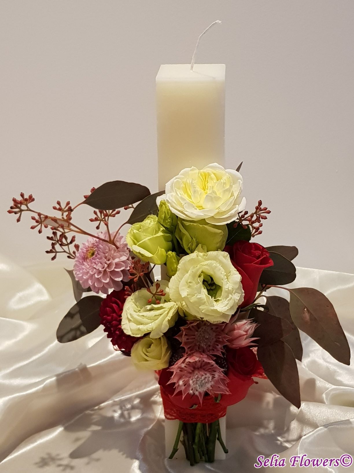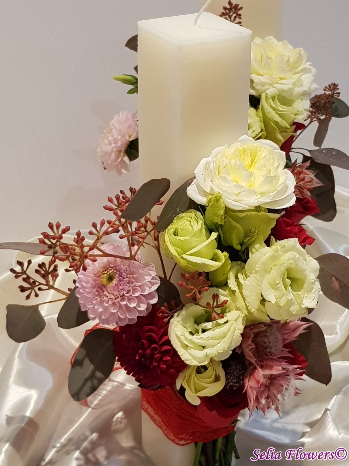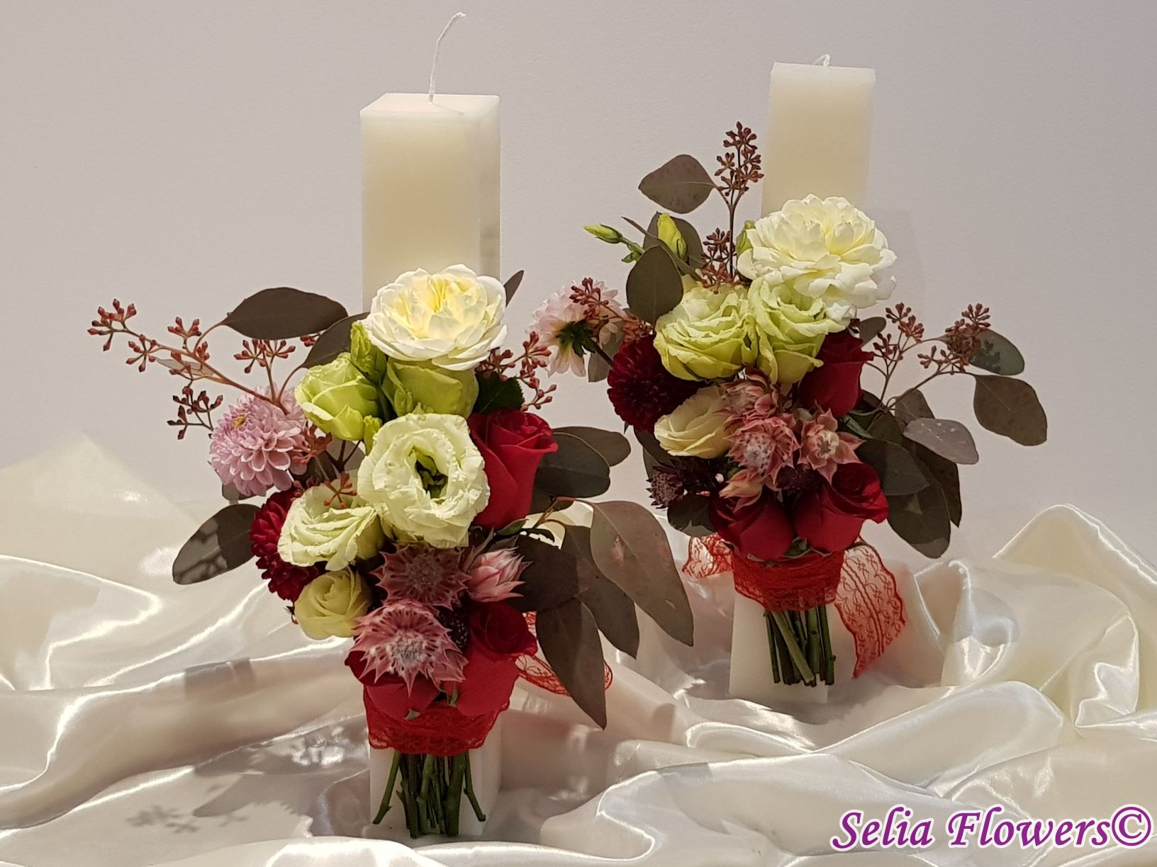 Lumânările pot fi personalizate în funcție de preferințele pentru flori și cromatică.