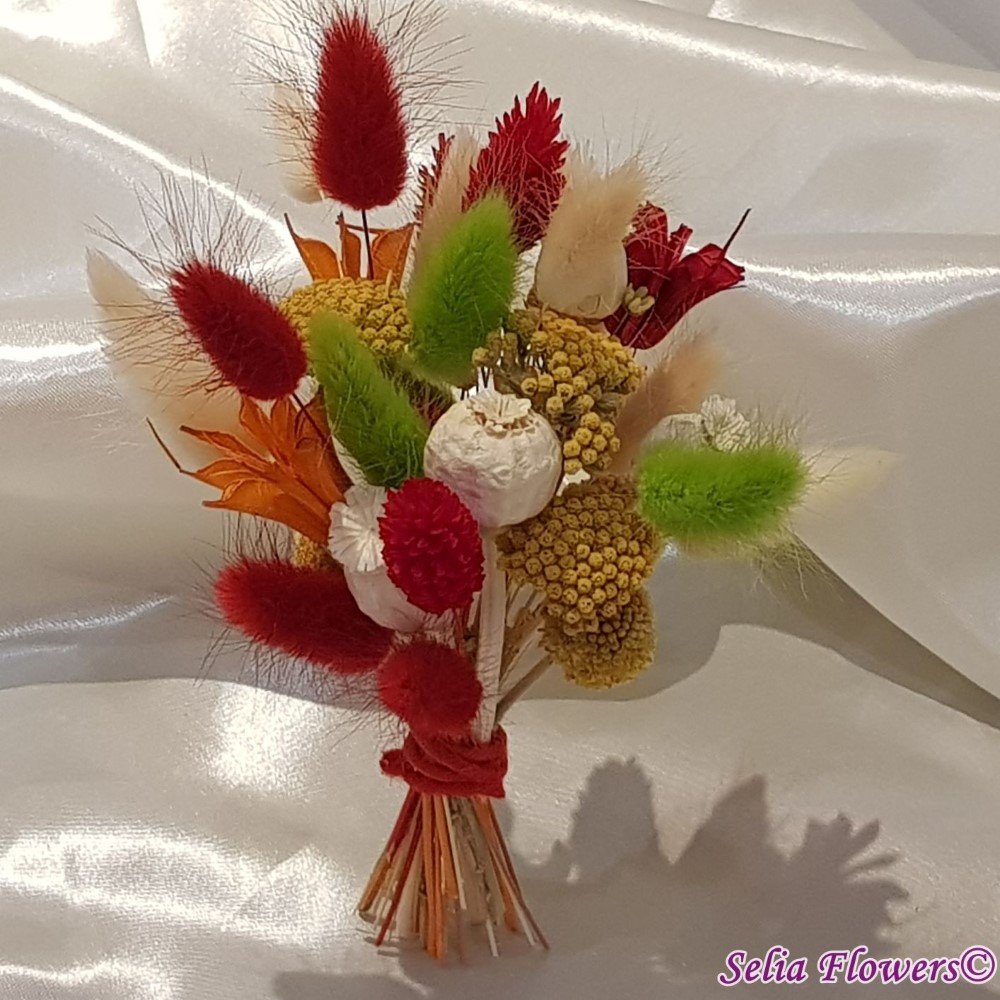 Alege sa daruiesti un martisor unicat, vesel si colorat, sub forma de buchet, construit din flori uscate sau stabilizate. Inaltimea buchetelului este de 17 cm Buchetelul este insotit de o punguta cadou din material ceramic, cu o inaltime de 9,5 cm.