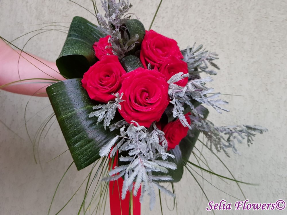 O alegere inspirata, atunci cand vrei sa ii spui cat de mult o iubesti. Buchetul contine trandafiri Red Naomi, verdeata si accesorii.
