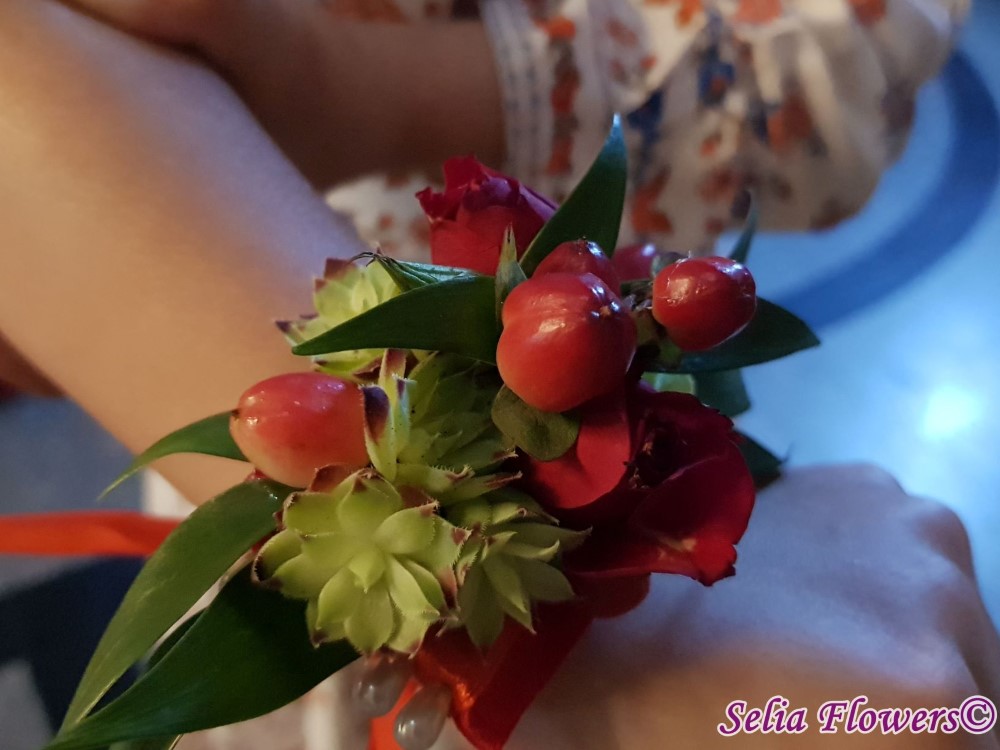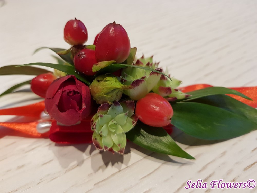 Compozitie: trandafiri tros, plante suculente, celosia.