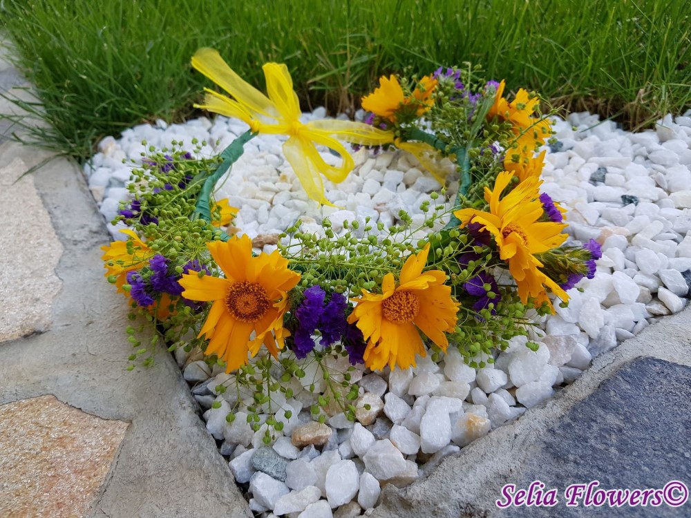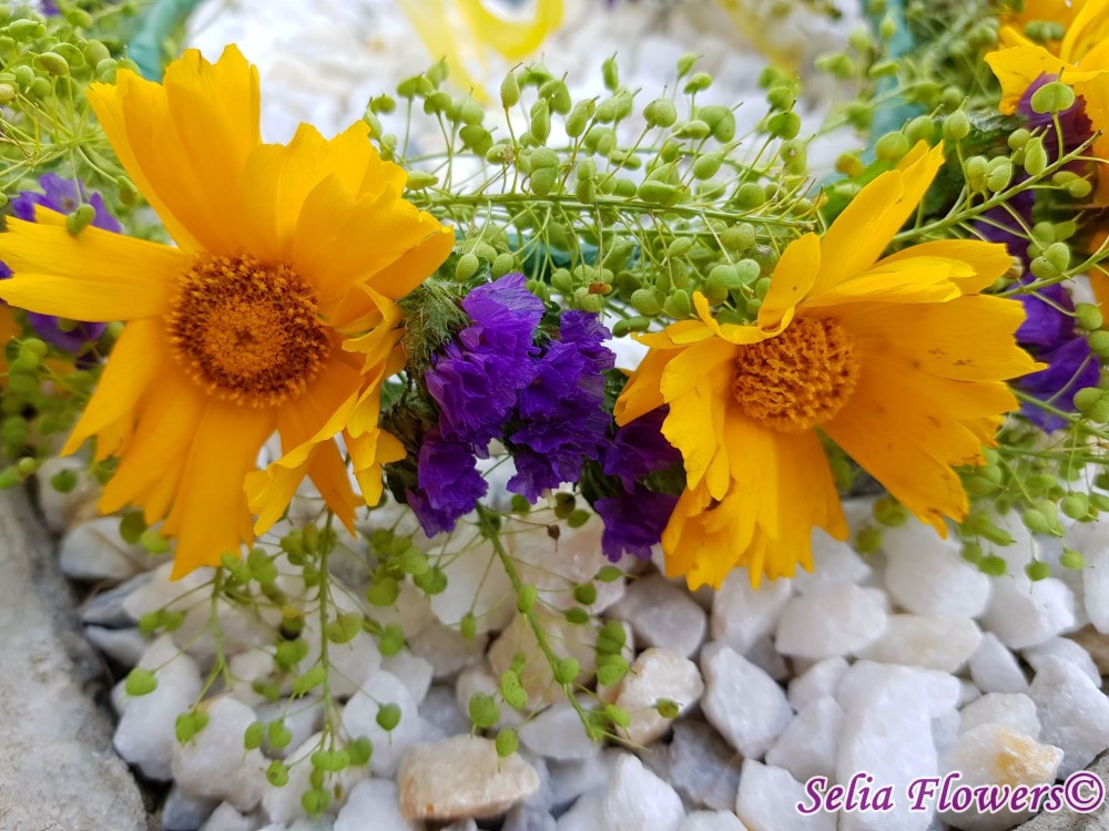 Coronita cu flori de galbenele si limonium