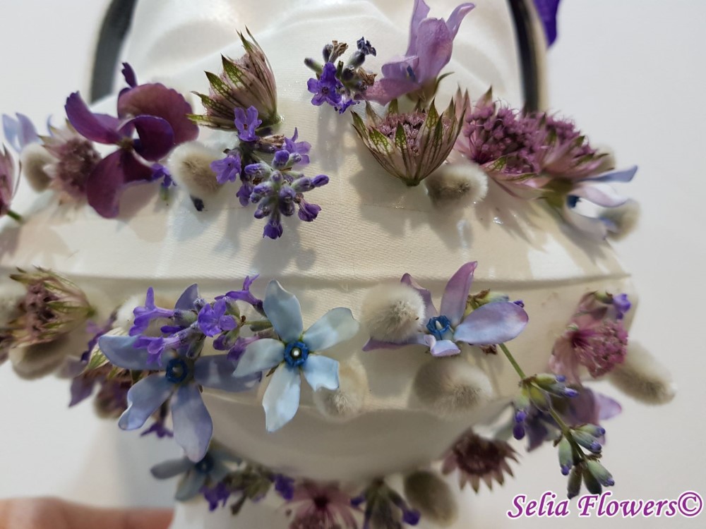 Masca, nelipsita acum de la evenimente este decorata si ea cu o parte din florile naturale utilizate la celelalte accesorii.