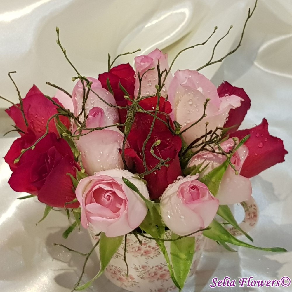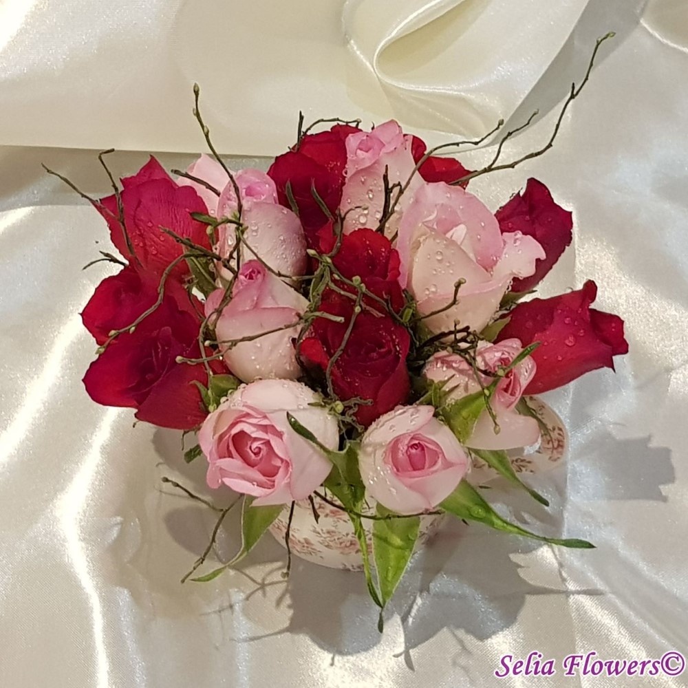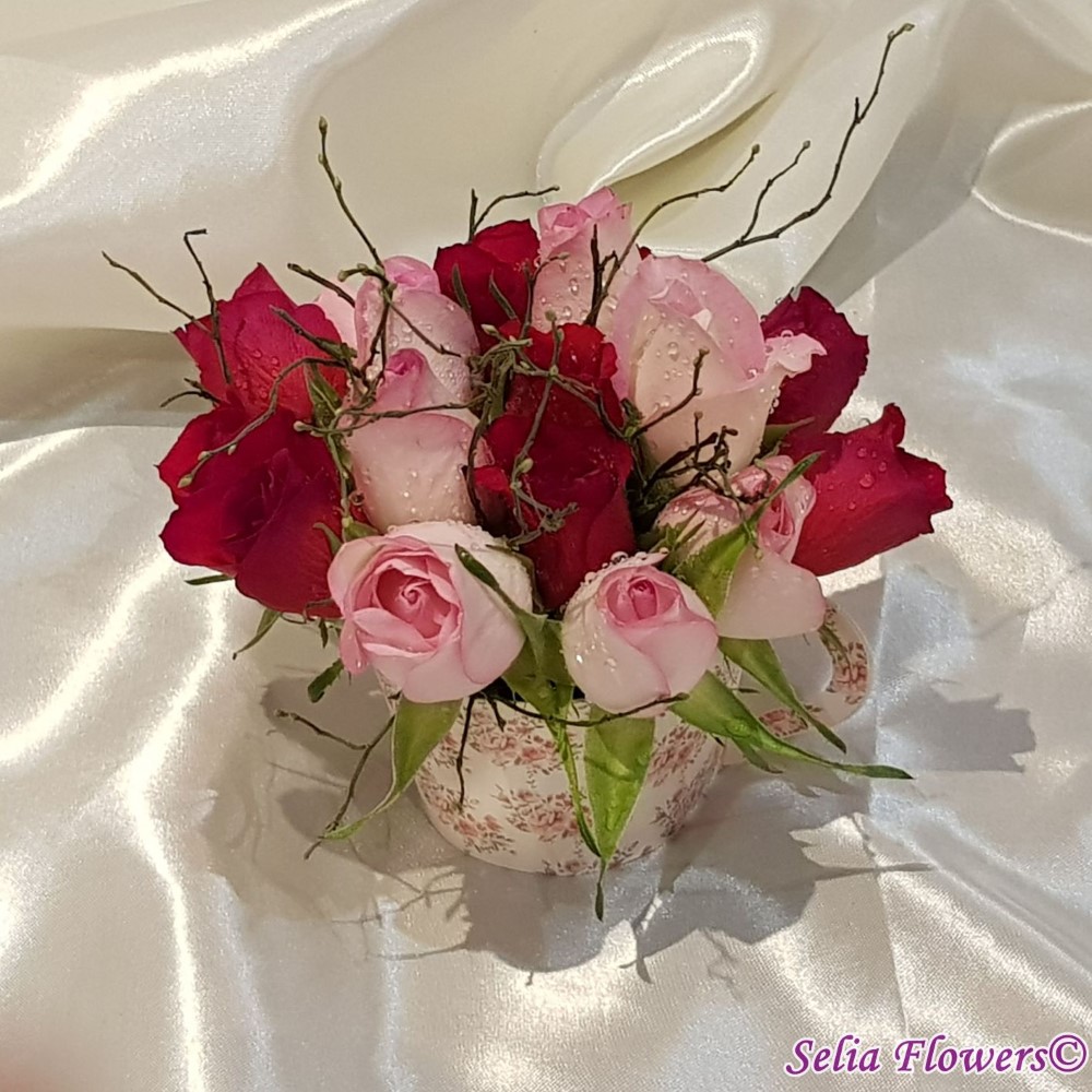 Un martisor original si plin de culoare, care va aduce bucurie si incantare. Este construit din minirose, in cescuta de carton cu model floral (inaltimea cescutei este de 8 cm), prevazuta cu burete umed care asigura hidratarea florilor.