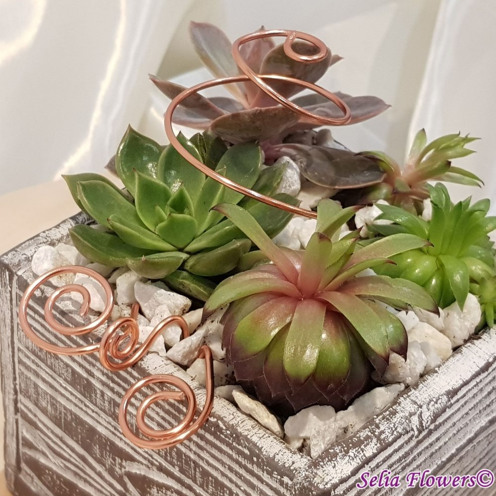 Aranjamentul este decorat cu pietricele de marmura decorativa. Este vesel, decorativ si deloc pretentios. Daca adori calatoriile sau esti plecat mai mult timp de acasa, reprezinta florile ideale, deoarece rezista destul de mult timp fara sa fie udate.