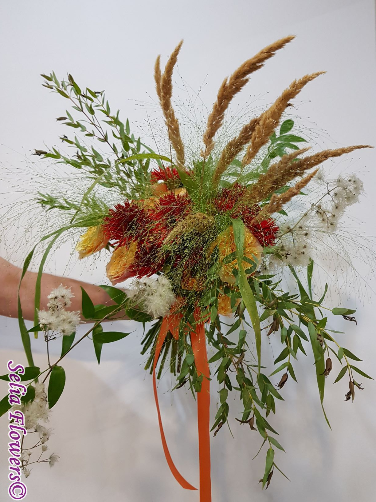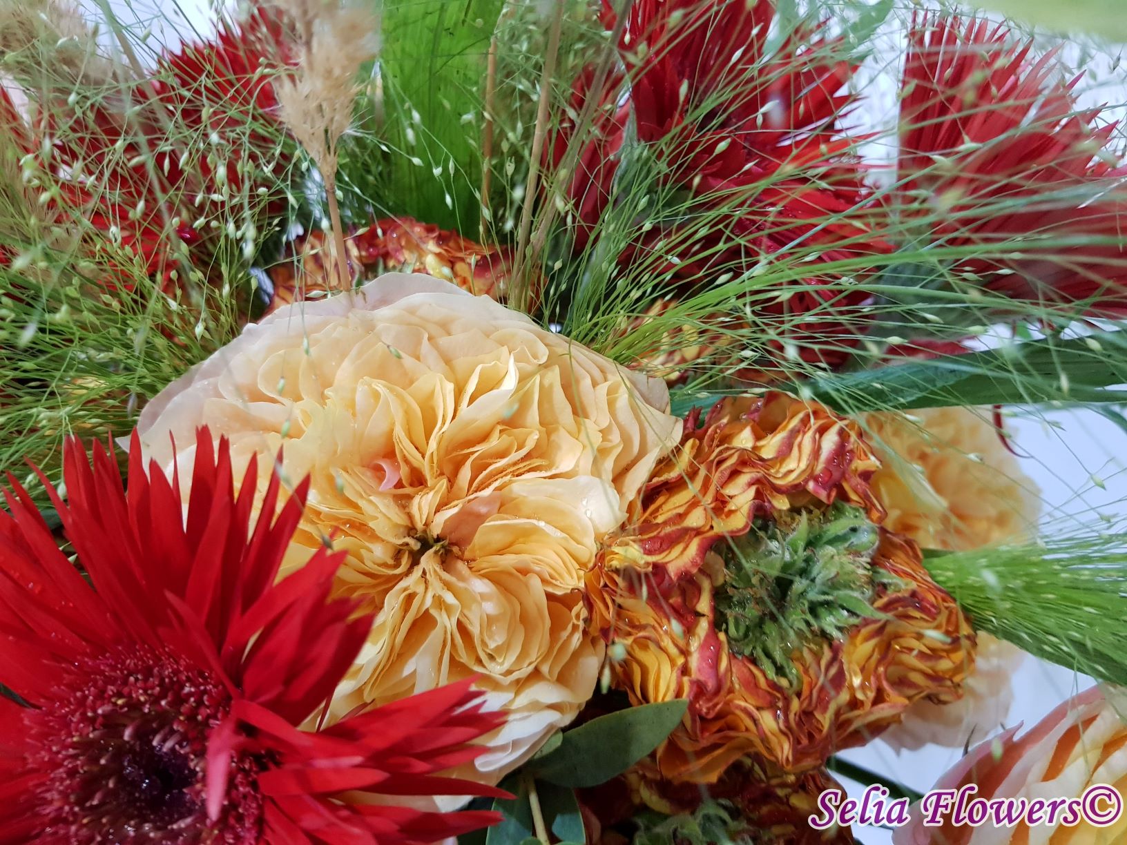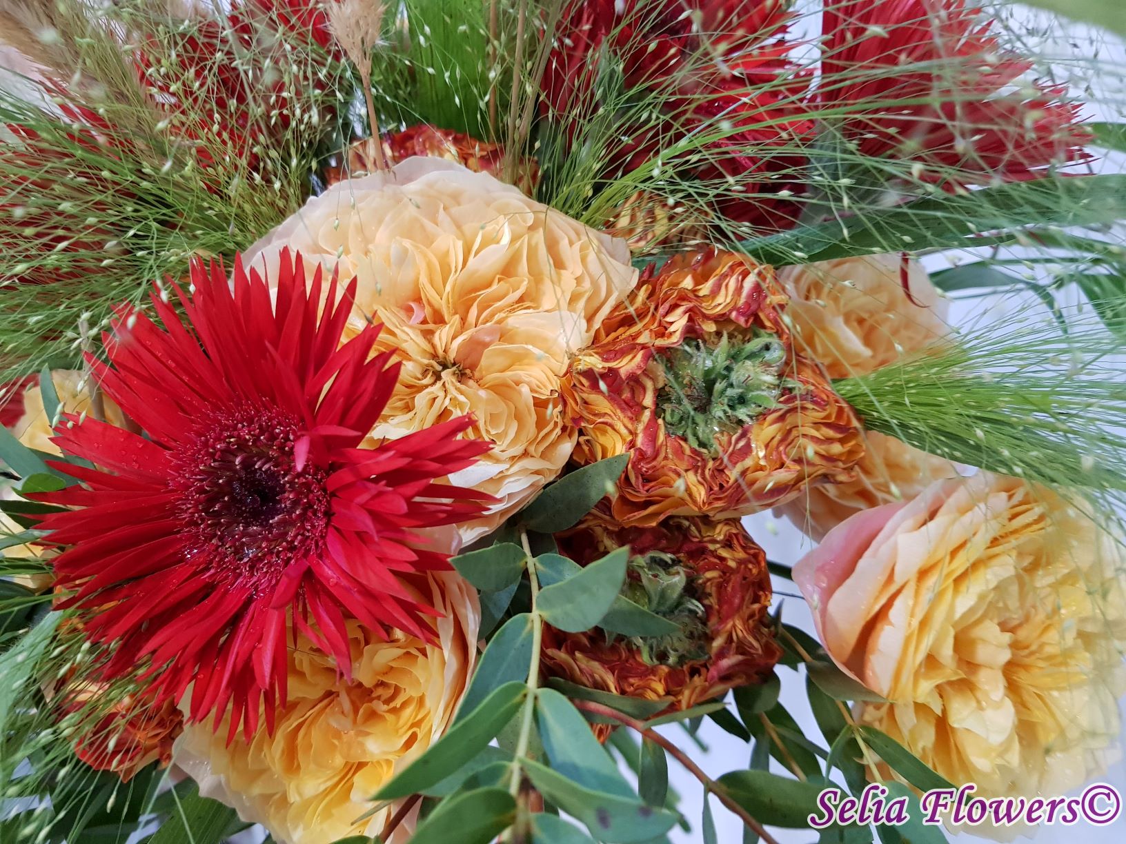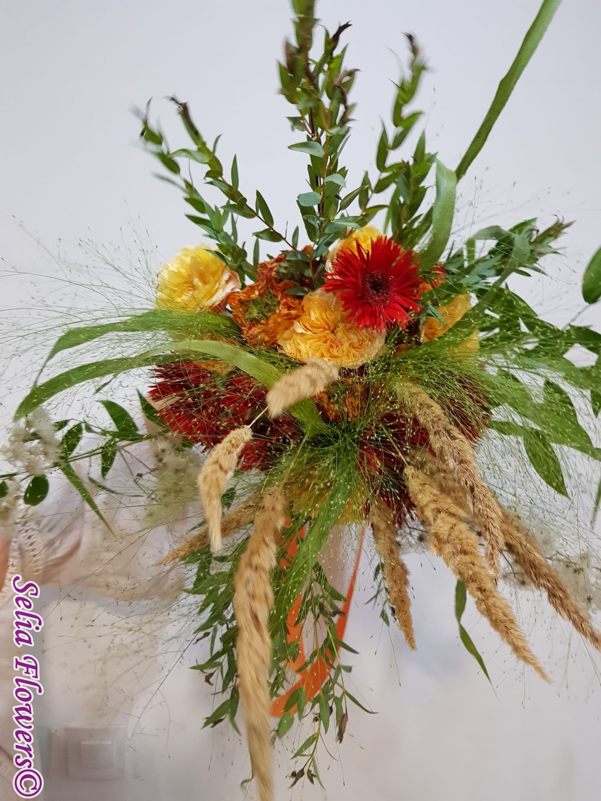 Pentru o persoana draga, un buchet pretios si plin de culoare, construit cu vip roses, clematis salbatic, germini, panicum, material vegetal din flora spontana.