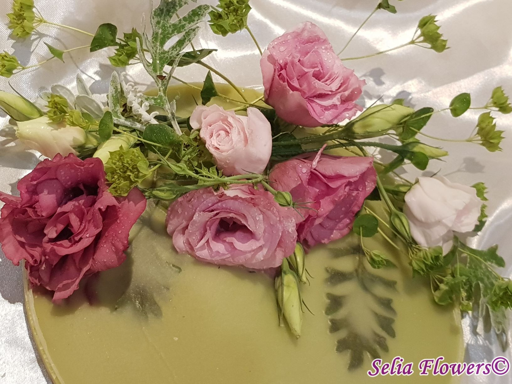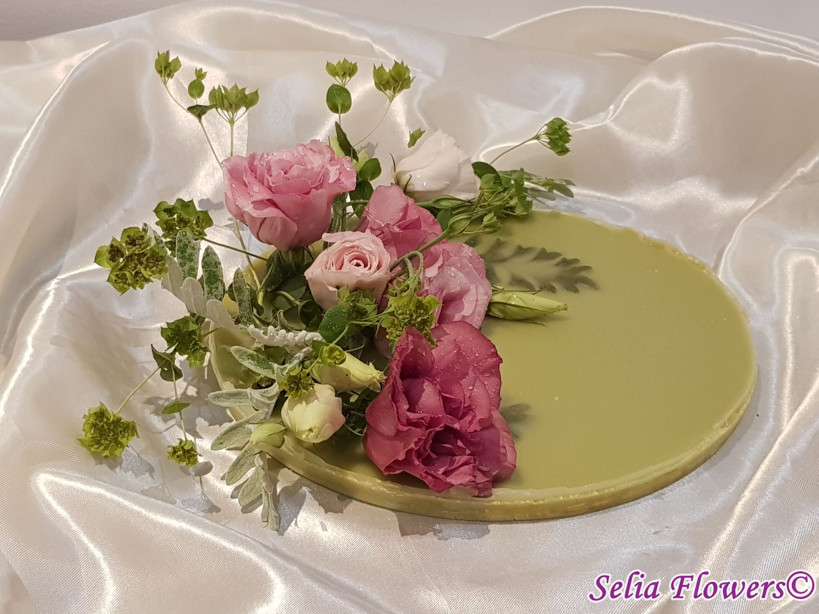 Un platou elegant și original potrivit pentru decorarea mesei, realizat din ceară și decorat cu flori naturale. Este un produs handmade realizat în atelierul floral Selia Flowers. Decorul se poate schimba în funcție de preferințele pentru flori, la fel și culoarea platoului.
