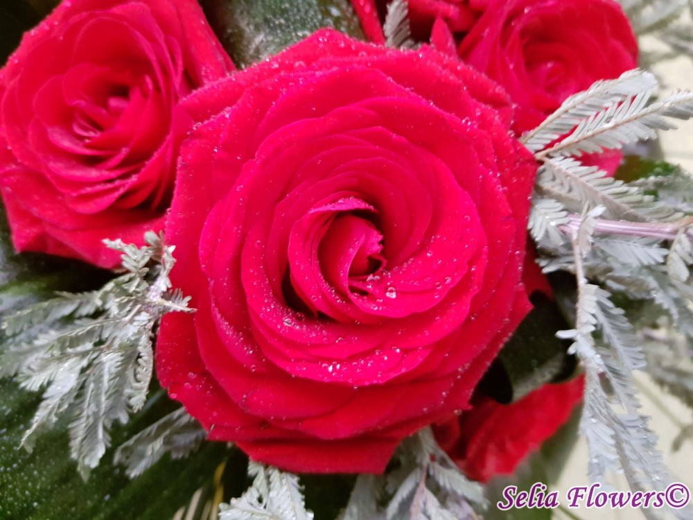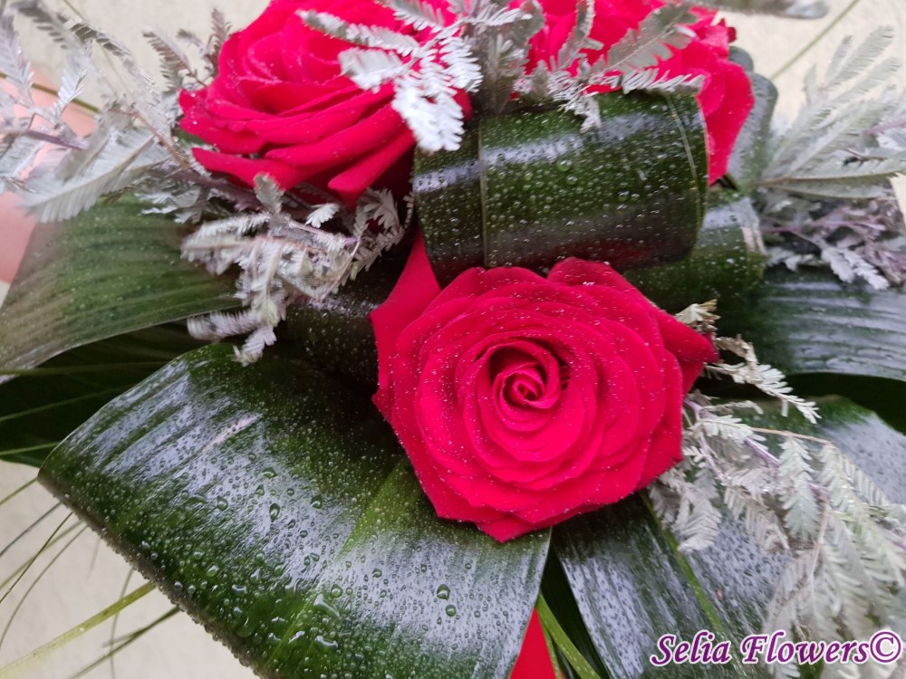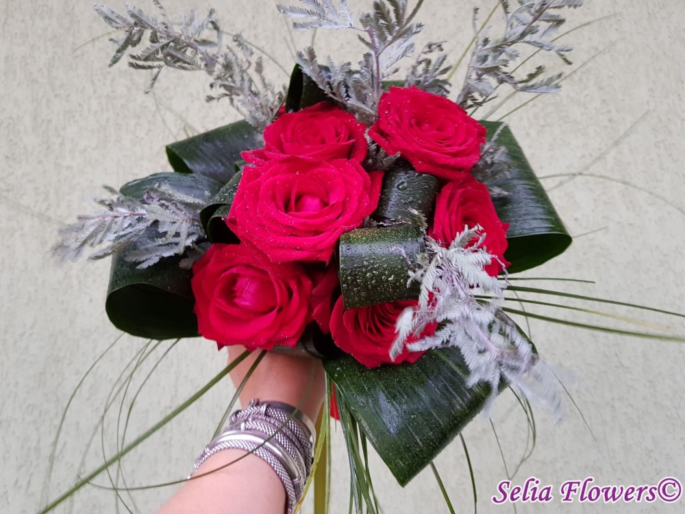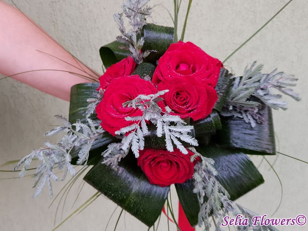 O alegere inspirata, atunci cand vrei sa ii spui cat de mult o iubesti. Buchetul contine trandafiri Red Naomi, verdeata si accesorii.